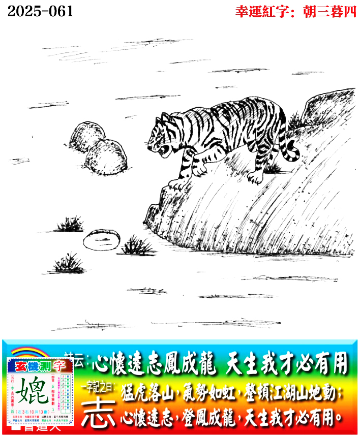 061期老版跑狗一字記之曰:【志】 詩雲:心懷遠志鳳成龍,天生我