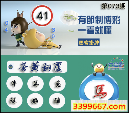073期正版彩图挂:41 爆:马 挂牌成语:苍黄翻复 挂牌出肖:牛马兔龙猴猪