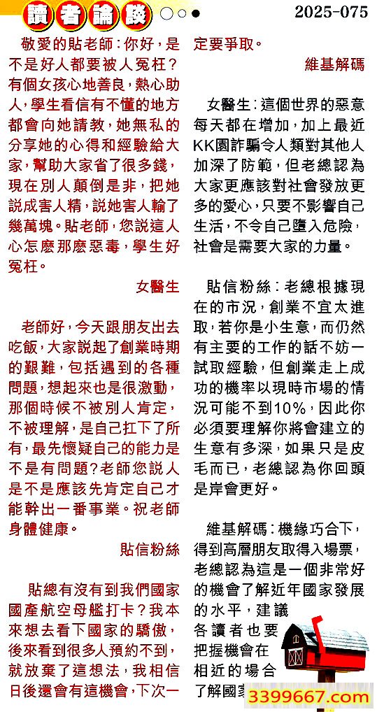 1.敬愛的貼老師:你好,不是好人都要被人冤枉?有個女孩心地善良,熱心助人,學生看信有不懂的地方都會向她請教,她無私的分享她的心得和經驗給大家,幫助大家省了很多錢,現在別人顛倒是非,把她說成害人精,說她害人輸了幾萬塊。貼老師,您說這人心怎麽那麼惡毒,學生好冤枉。===女醫生