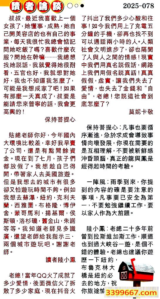 078期:彩民推荐〖貼信讀者論壇〗