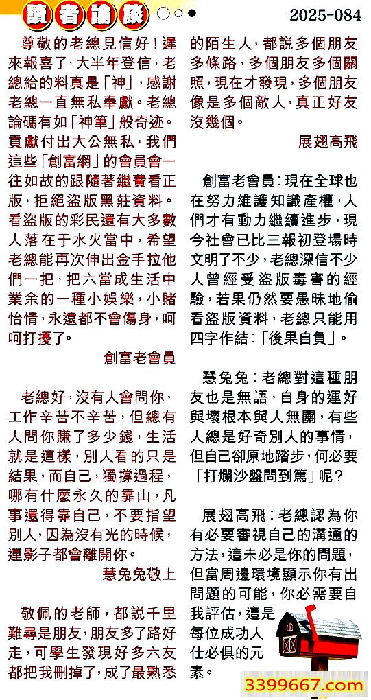 〖創富老會員〗:現在全球也在努力維護知識產權,人們才有動力繼續進步,現今社會已比三報初登場時文明了不少,老總深信不少人曾經受盜版毒害的經驗,若果仍然要愚昧地偷看盗版資料,老總只能用四字作結:「後果自負」。