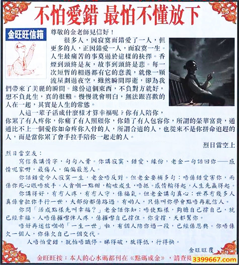 085期:金旺旺信箱彩民推荐→→《不怕愛錯 最怕不懂放下》