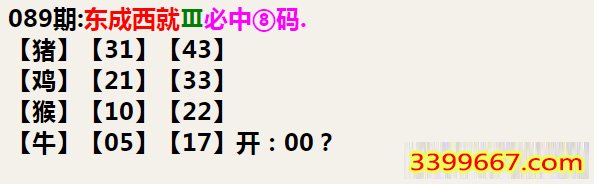 089期:东成西就Ⅲ必中⑧码