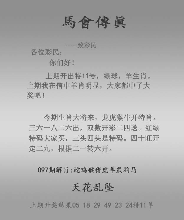 097期:正马会传真