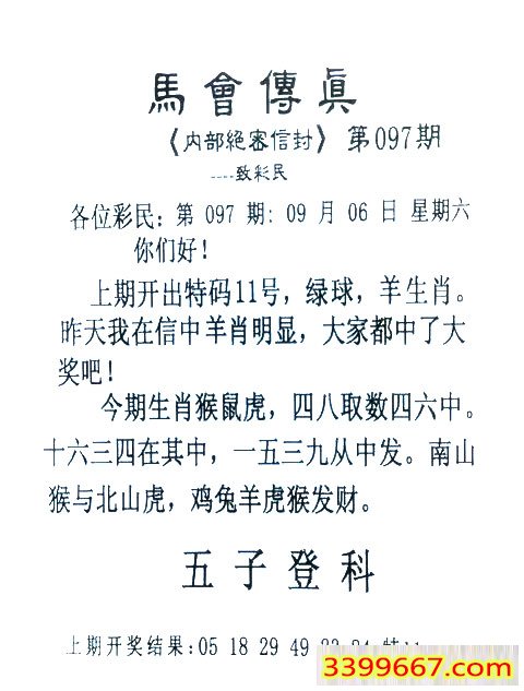 097期:首发推荐:≮馬會傳眞≯→(香港正版)