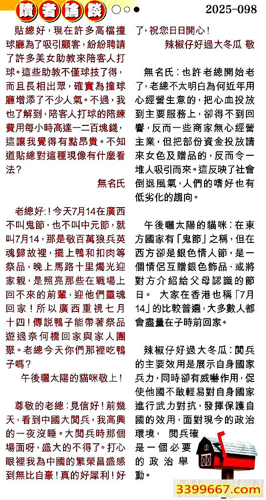 第零九八期讀者論談