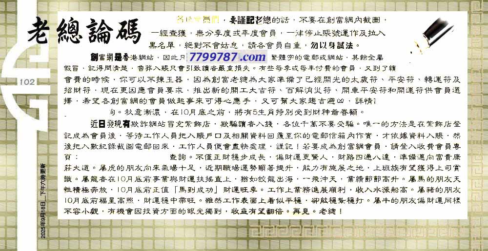 102期:六合皇金句/老总论码/萧公子/林大师/五行夺码/老总信箱截