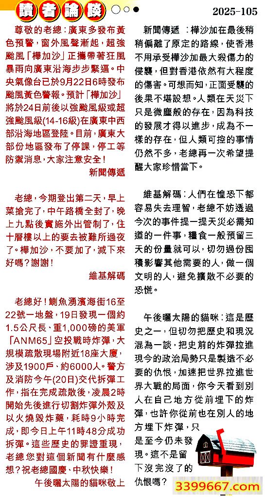 105期:彩民推荐〖貼信讀者論壇〗