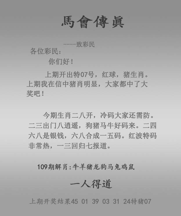 109期:正马会传真