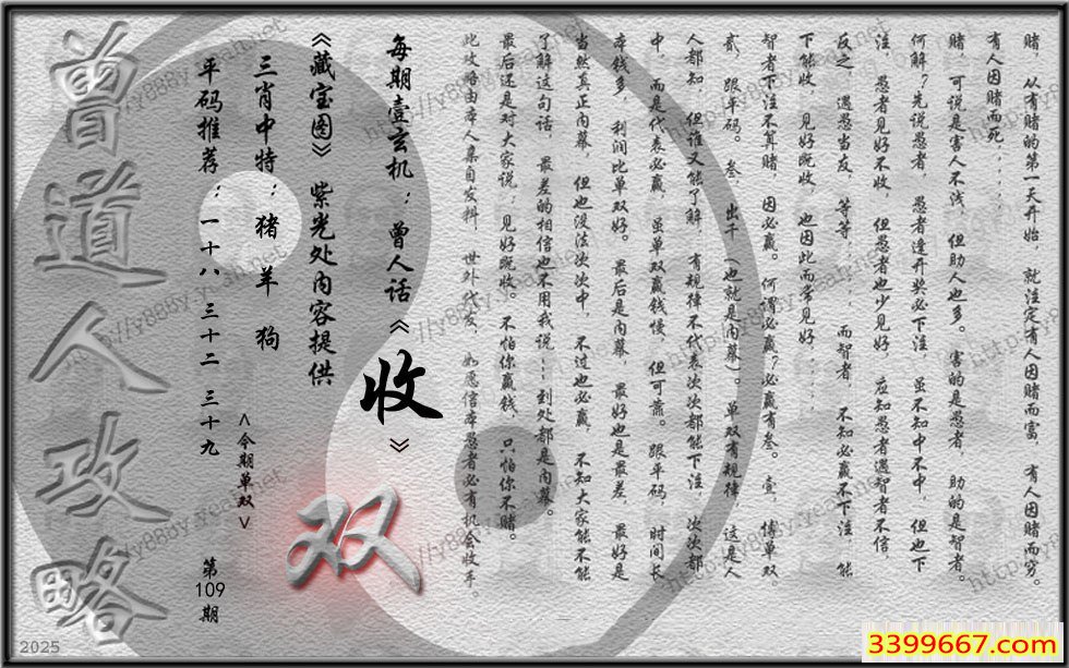 109期藏寶圖 新:清坐闲披贝叶文 老:寻到溪源壹线初 禁:龙 禁:6尾 玄機字:《收》