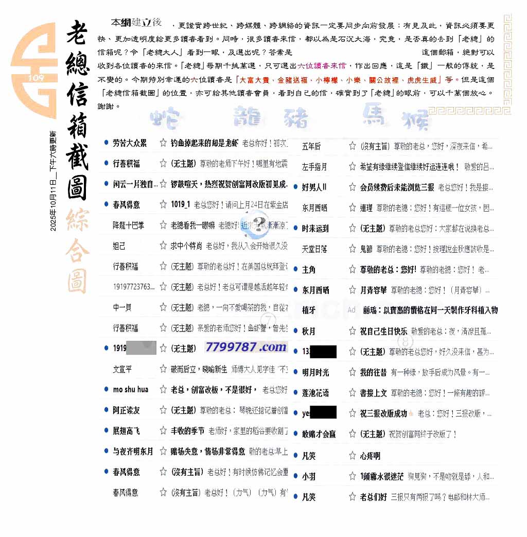 109期:六合皇金句/老总论码/萧公子/林大师/五行夺码/老总信箱截