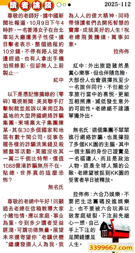 112期:彩民推荐〖貼信讀者論壇〗