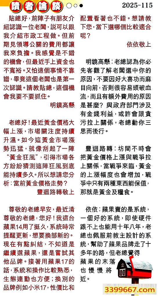 第一一五期讀者論談